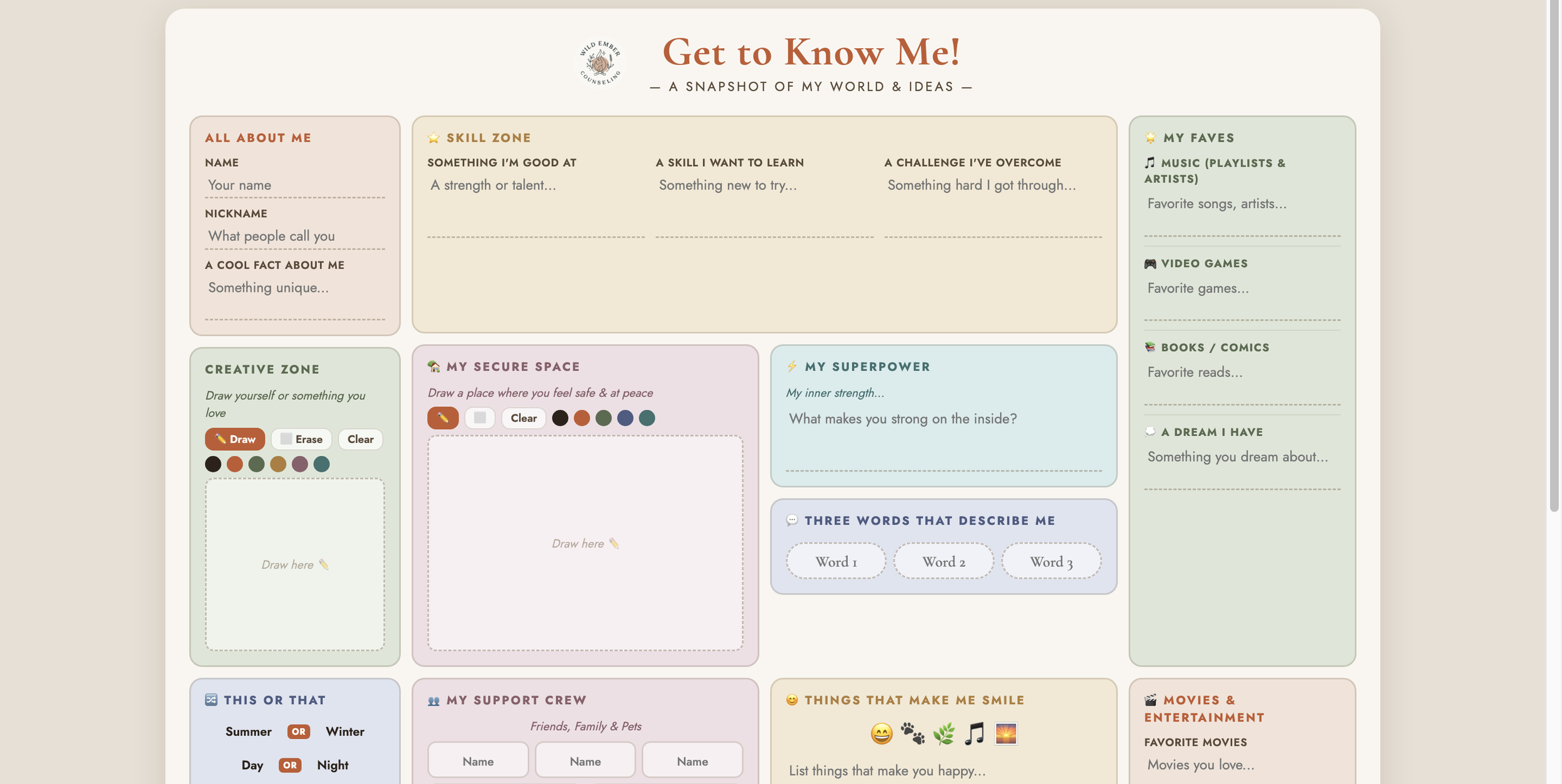 A digital poster to write and draw about the things that are unique about you.
